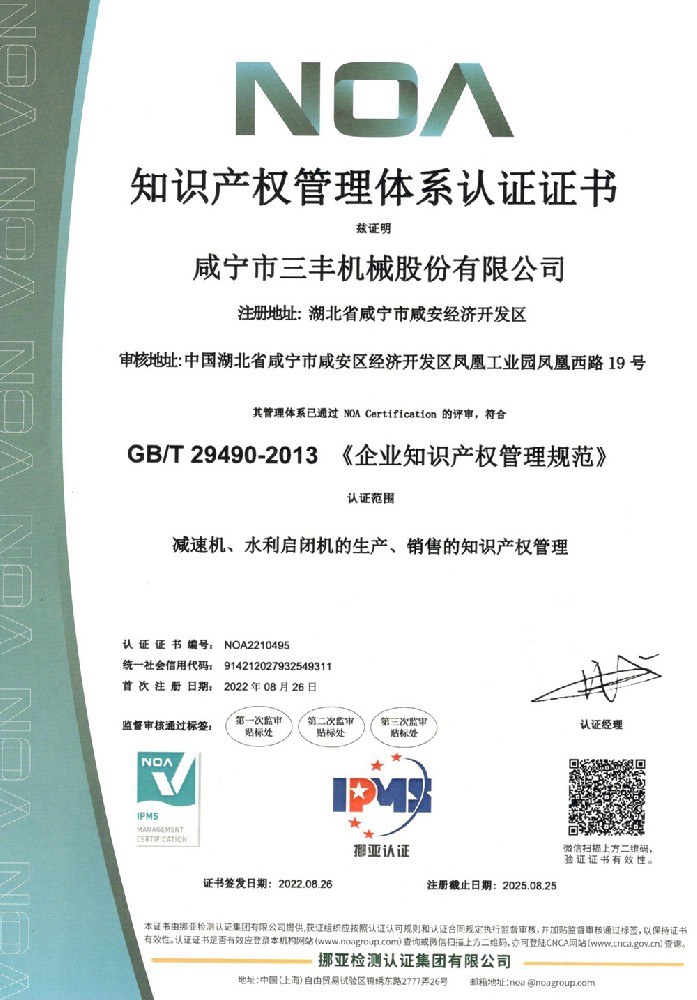 知識產(chǎn)權管理體系認證證書